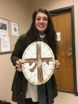 As Molly explains, “The thread woven through the nightingale’s beak represents the violent silencing Philomela experienced as Tereus’ hands…The second symbol is the crucifixion, which represents fifteenth-century nun Teresa de Cartagena’s God imposed silence….The symbol of the cross is representative of the self imposed silence of Julian of Norwich.” Molly chose to “represent these silences above all others because they were the most striking and poignant to me.” To the entire class and me as well! Thank you, Molly!