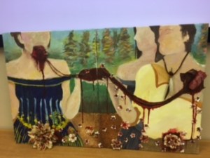 Some students wrote research papers, while others opted for conceptual art projects, like the one to the right which gives an alternative version of the Philomela myth. Students had us participate in human empowerment exercises, play tarot, and play the silence game. All of them had thought deeply about the amazing lives of women we had encountered.