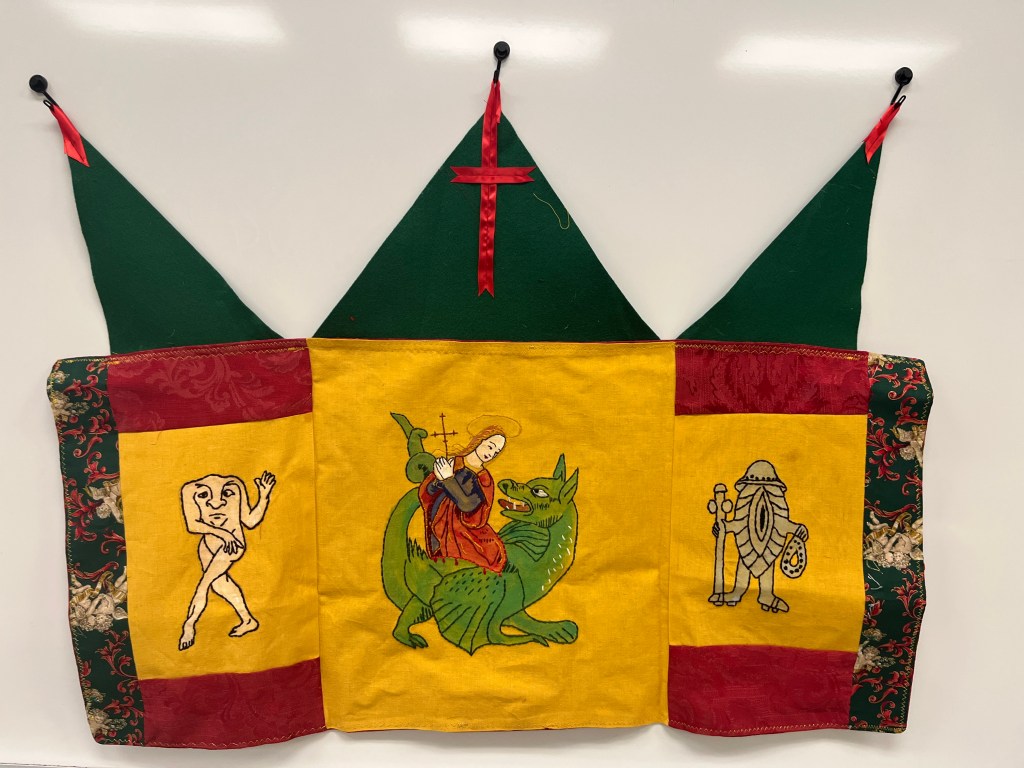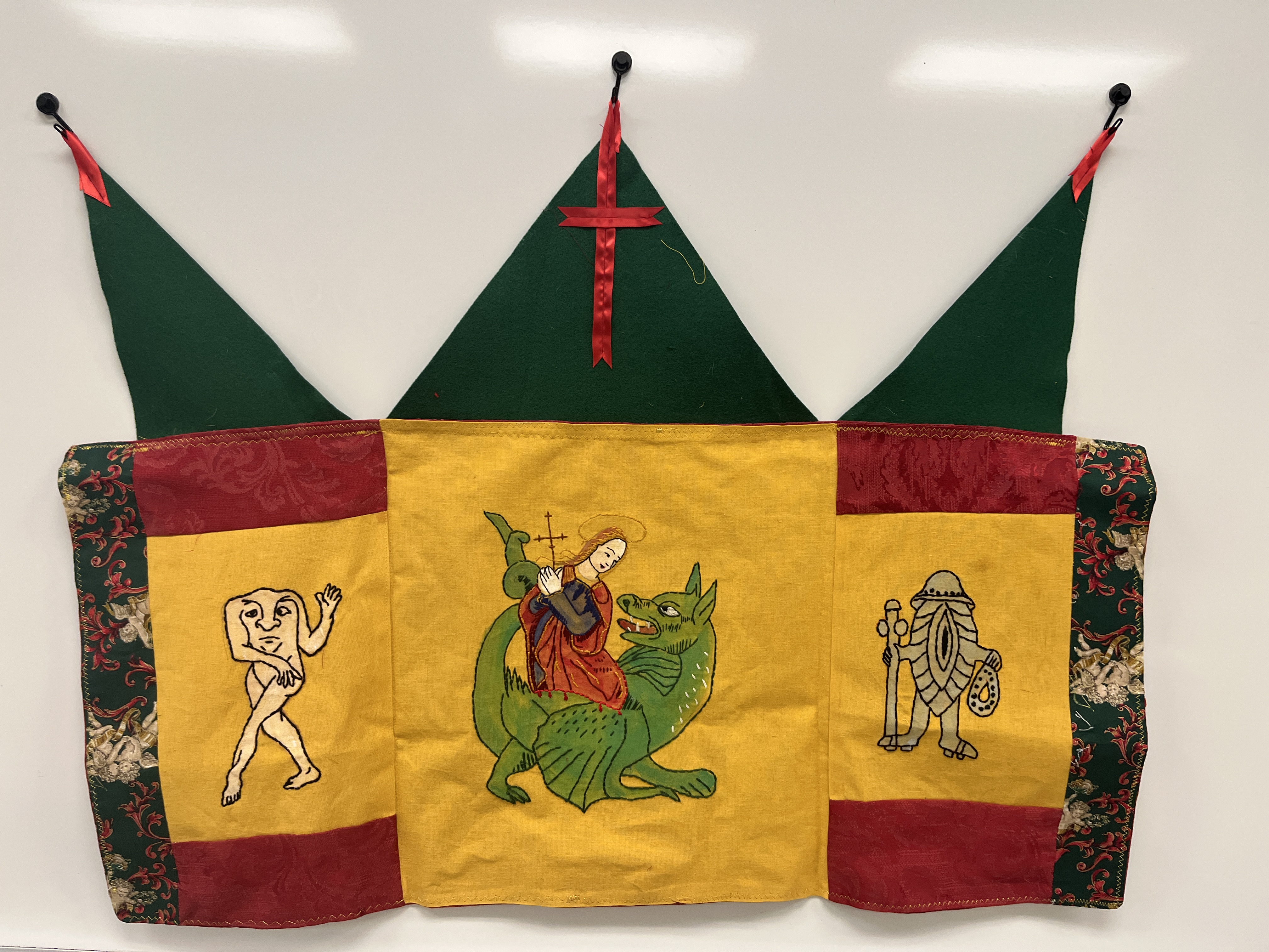 This tapestry by Cassie is just amazing, drawing (no pun intended!) on Mandeville’s Travels, The Life of St. Margaret, and images such as obscene pilgrim badges.