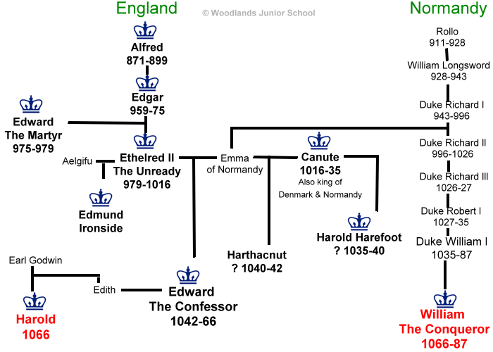 Emma was able to keep her blood linage on the English throne. And when the last Anglo-Saxon King, Harold Godwinson, died her great-great nephew became king of England. And his name was William the Conqueror.
