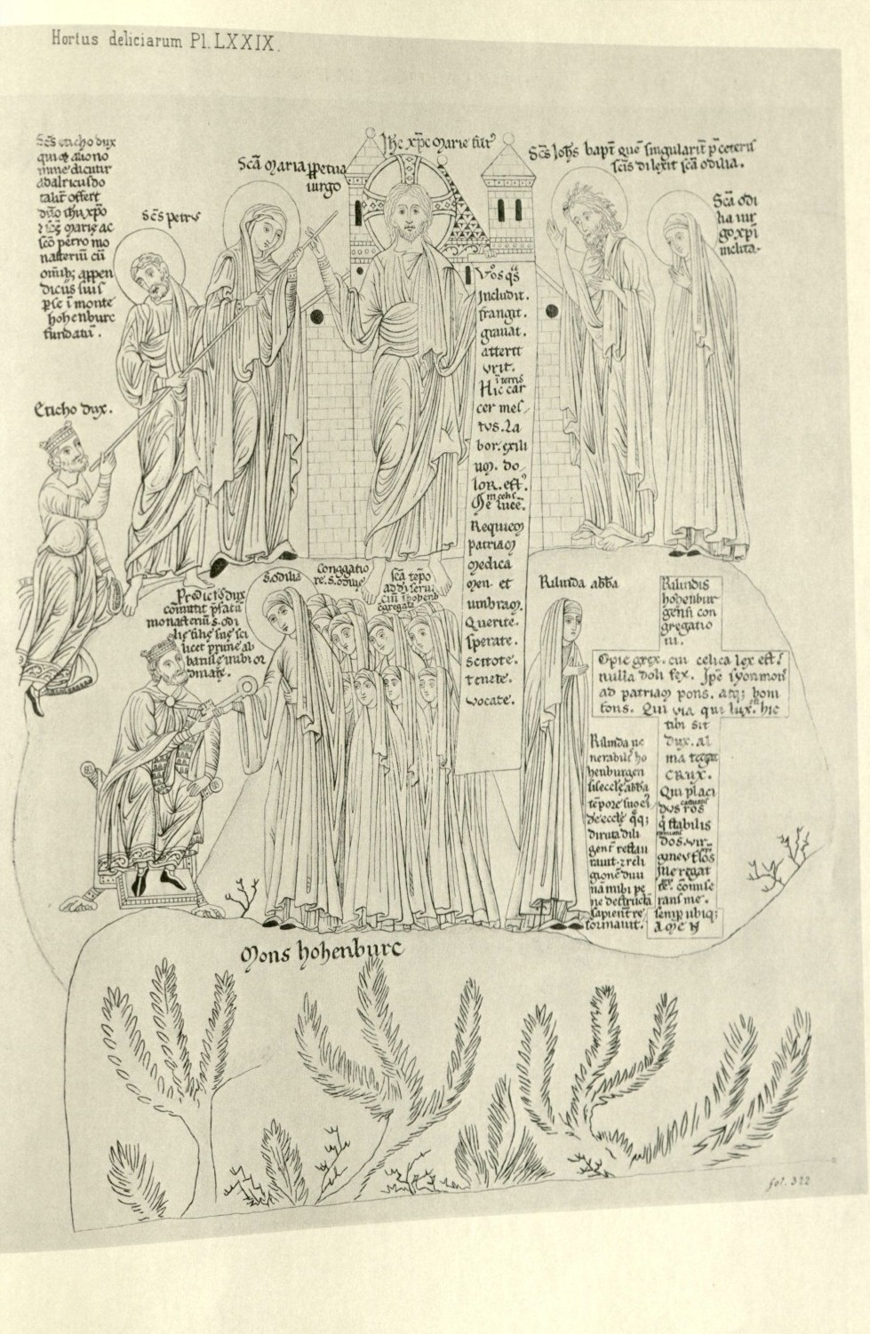The first is a picture of Duke Etichom, the man who founded the monastery on Mount Hohenbourg. [16]: