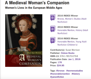 “Historians are writing brilliant books about women in the middle ages. Hurrah! Where to begin?! If you’re just starting, I can’t think of a better introduction and overview than Susan Signe Morrison’s new book, A Medieval Woman’s Companion (Oxbow Books 2016)….If you’re writing about medieval women or teaching medieval history or literature, this book is an essential. What a resource!”